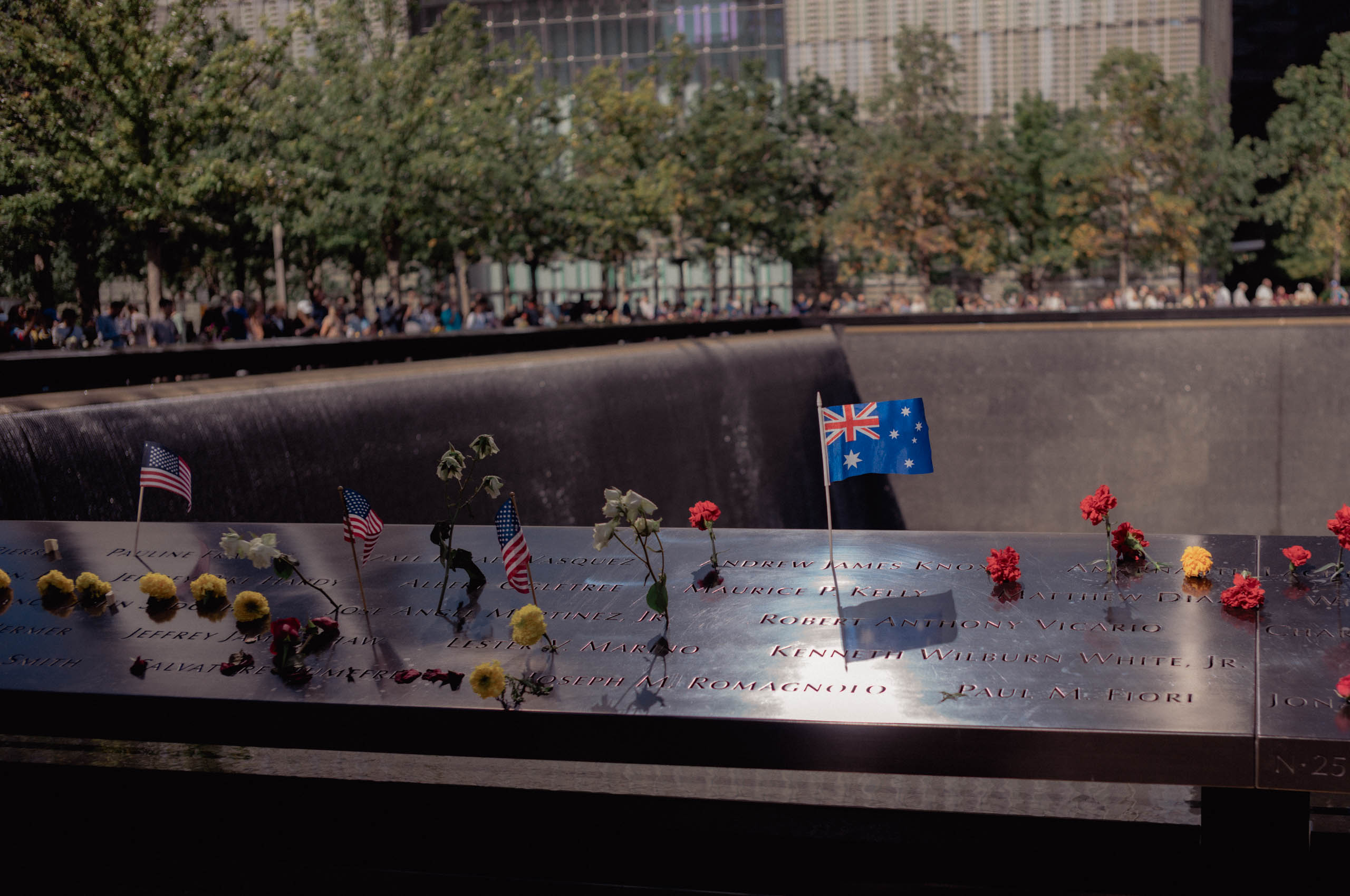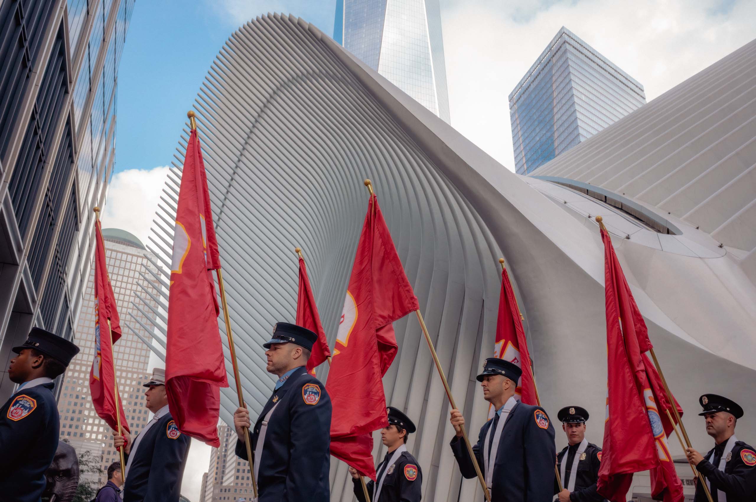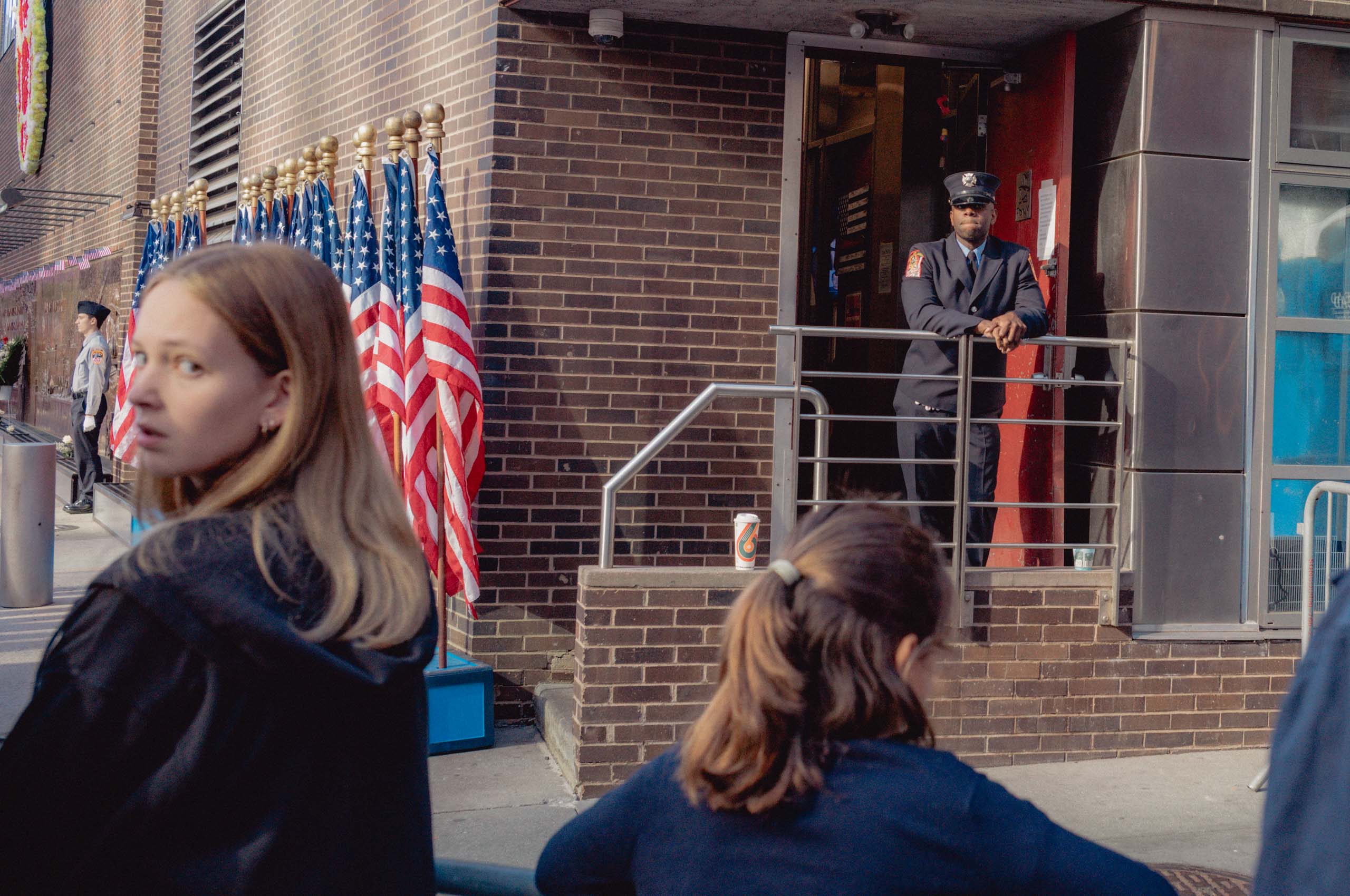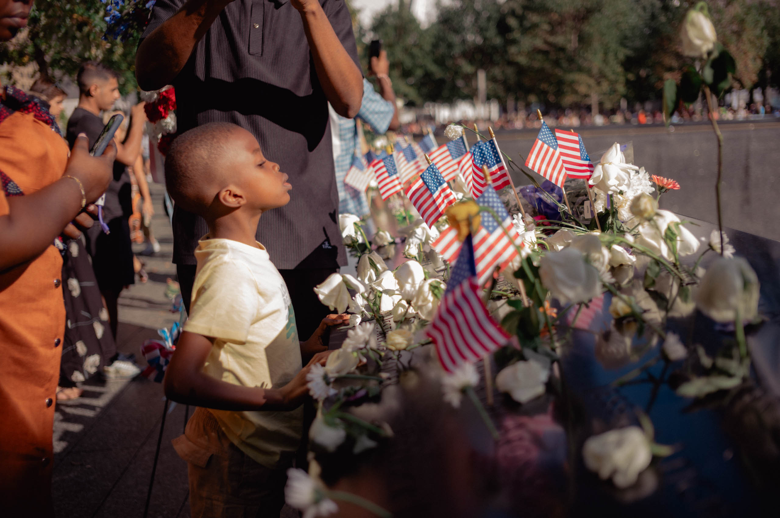 This work treats the September 11 memorial as a civic altar where private loss turns into shared memory. The gathering models a national community held together by ritual and synchronized media time, and it sits within a sociology of memory that outlives firsthand experience. Architecture and ceremony fix attention and story at once. The place reads like a tuning fork for public feeling.