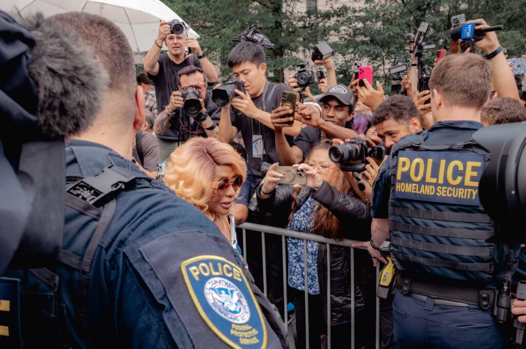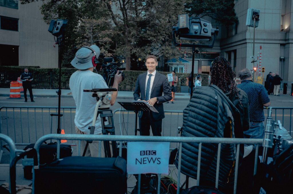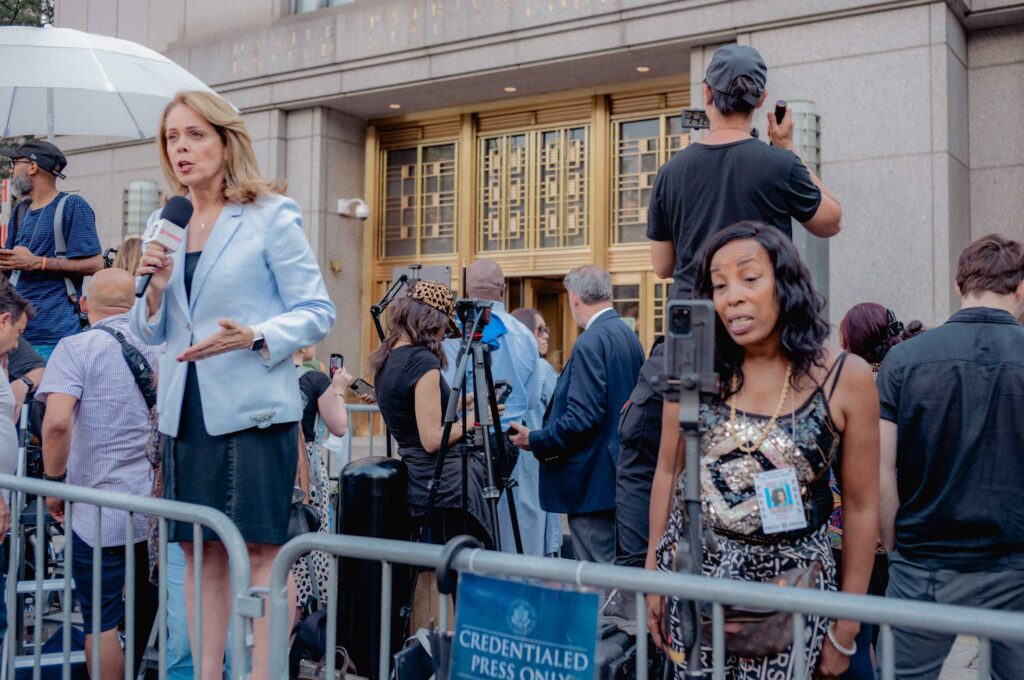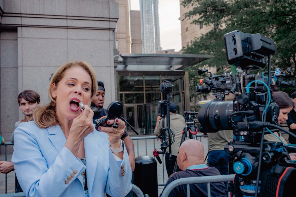 An exploration of the modern media circus surrounding celebrity trials, where live streamers and influencers jostled alongside legacy news.