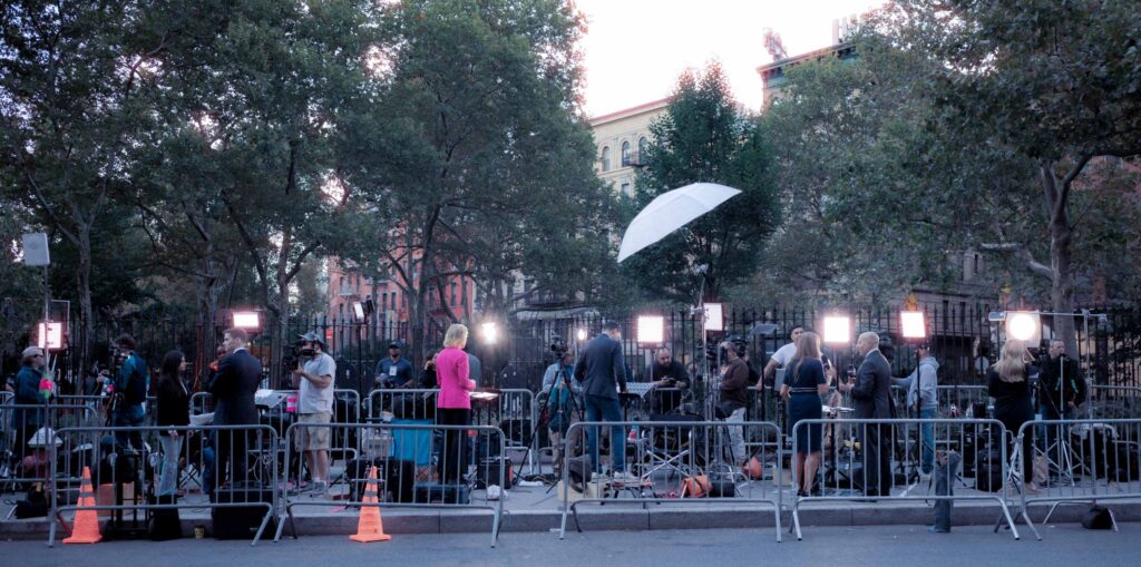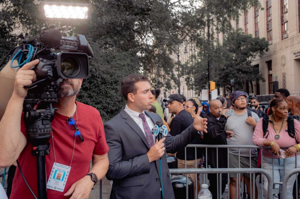 This work confronts the theater of public fascination with celebrity legal spectacle, framing the streets outside the Sean “P Diddy” Combs trial as a site where media, fans, and onlookers collide. It operates through the tension between disciplined observation and spontaneous chaos. Live-streamers stand shoulder to shoulder with television crews beneath the indifferent architecture of Lower Manhattan. These frames probe the oscillation between anticipation and eruption, the sidewalk functioning as both arena and observation deck.